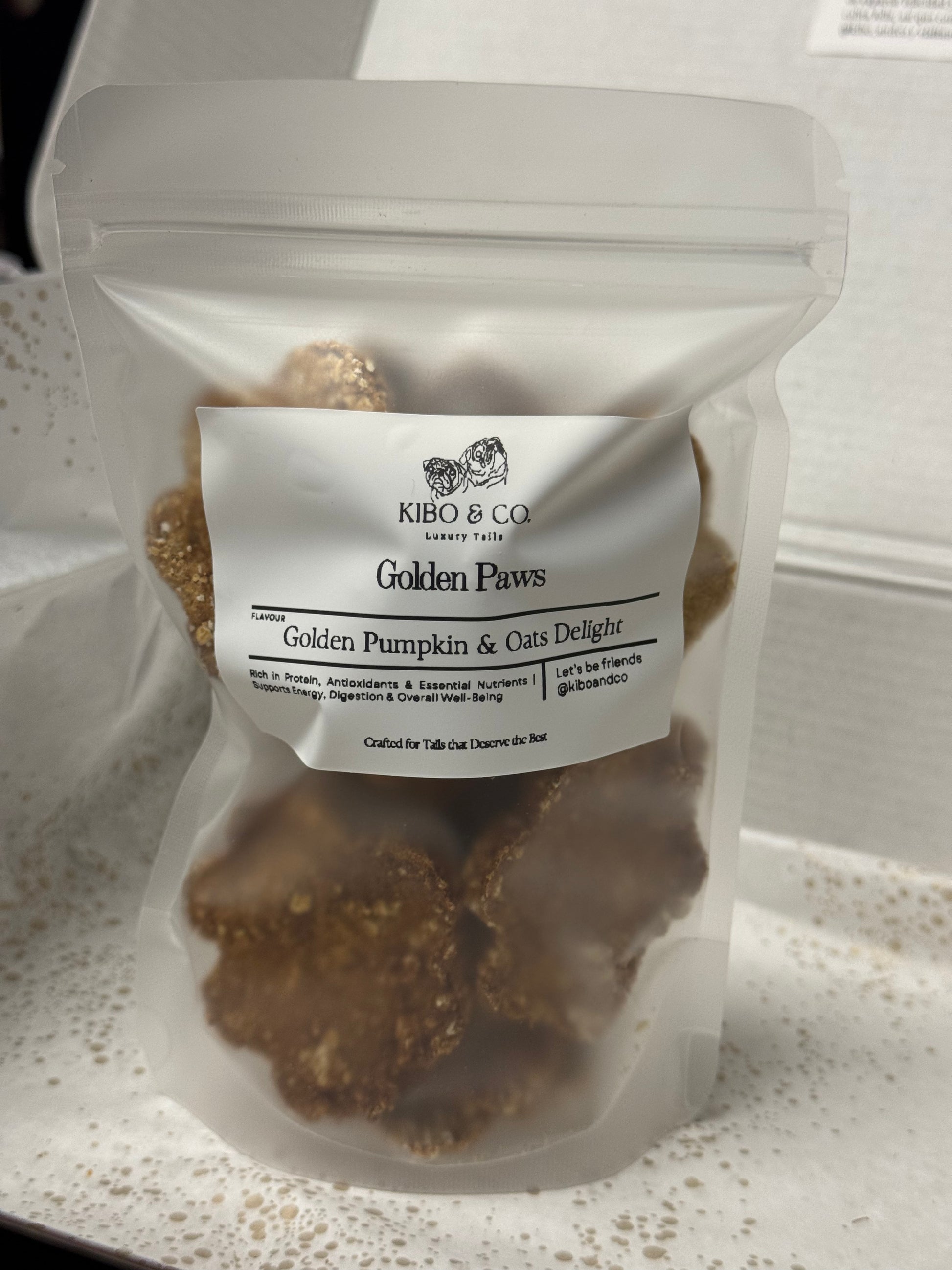 Handcrafted with love in Florida, Golden Paws are made with real pumpkin and baked to perfection for a soft crunch dogs adore.